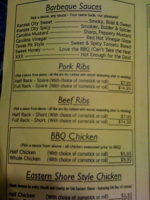 spare (with choice of cornstick or roll); pick a sauce from above - all ribs are dry rubbed with secret seasoning prior to smoking.